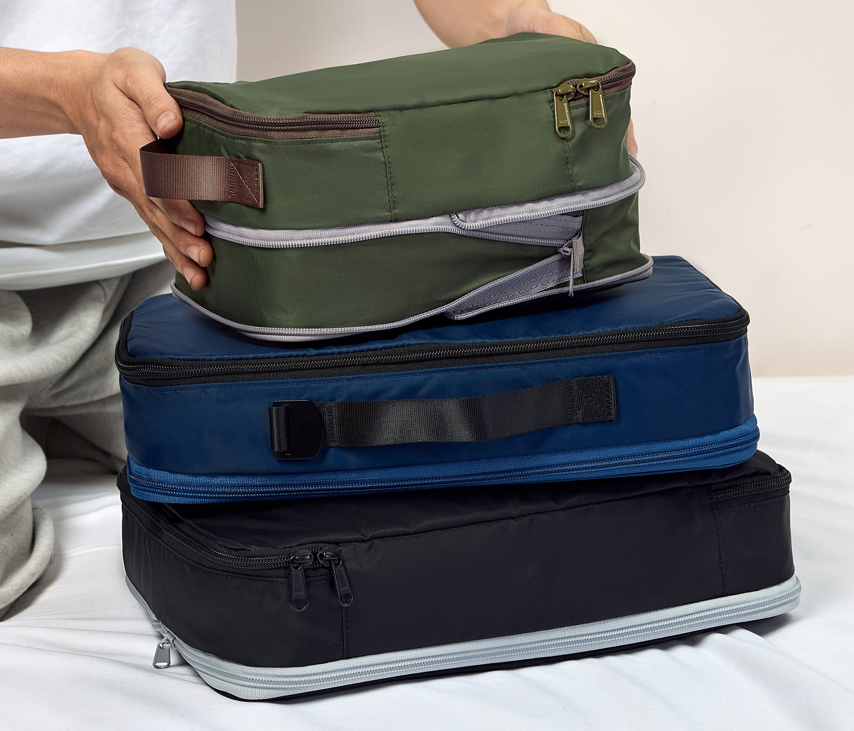 - Maximises luggage space with a compact, compression design