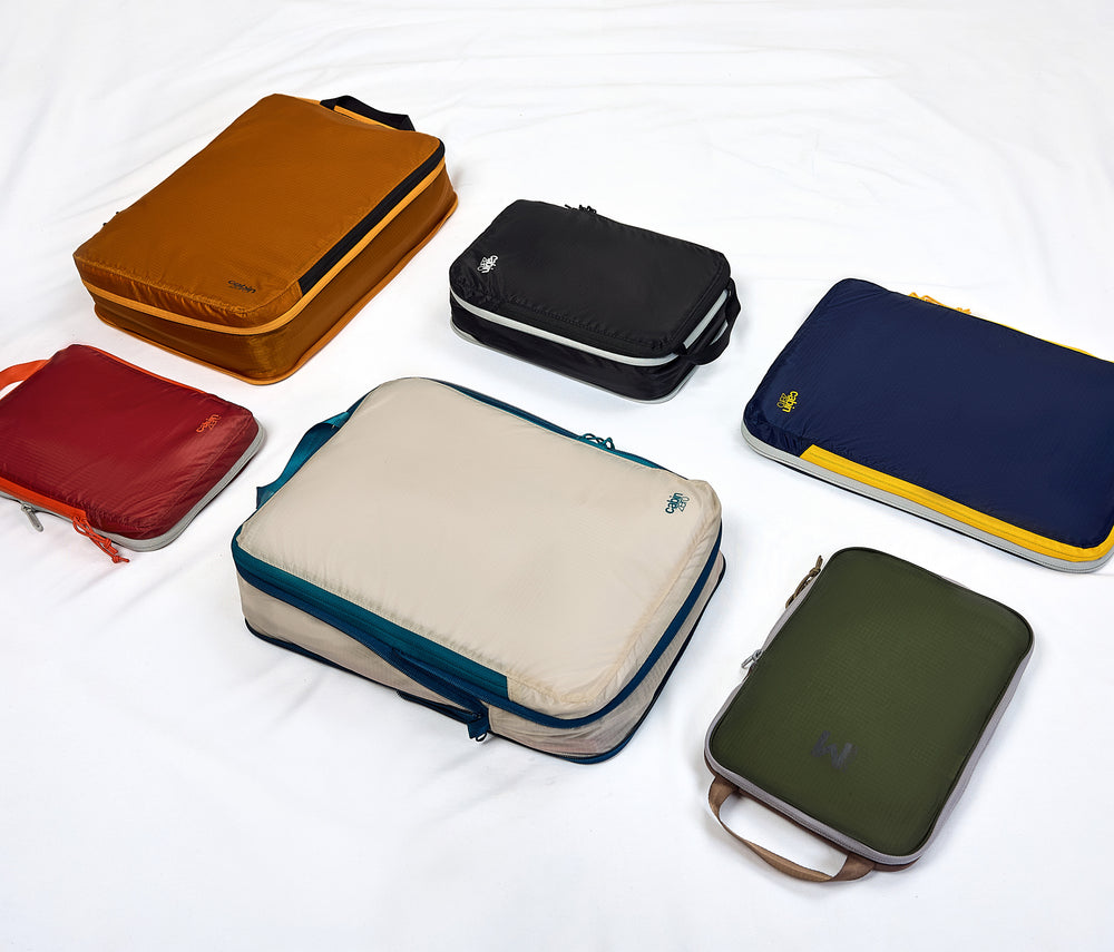 We’ve taken our lightest travel organiser and added a game-changing twist. Barely there in weight, barely takes up space. And with compression that works, you can now bring one or two more outfits without worry. Built to last for years and years, with a water-resistant coating and smooth YKK zippers that never let you down. Made from recycled materials. Backed by our lifetime warranty.