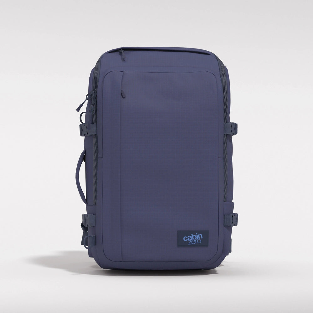 The ADV backpack shines with a versatile design that fits comfortably as a maximum-sized cabin backpack, whilst being comfortable enough for a short day hike. A complete support harness system - a padded waist belt, a sternum strap, and top tension straps - provides a custom, comfortable fit. Available in 32L and 42L.